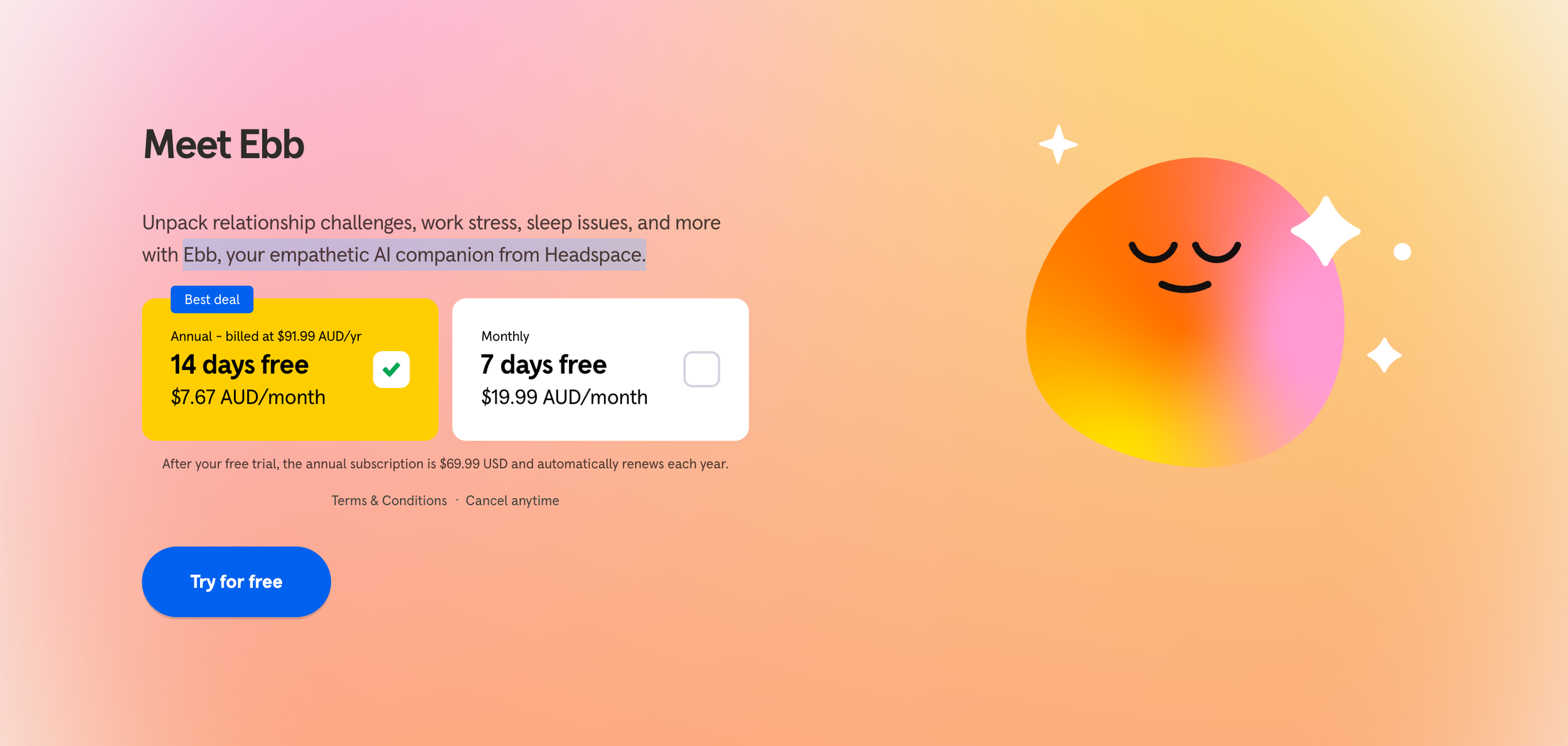 Meet Ebb! your empathetic AI companion from Headspace.
