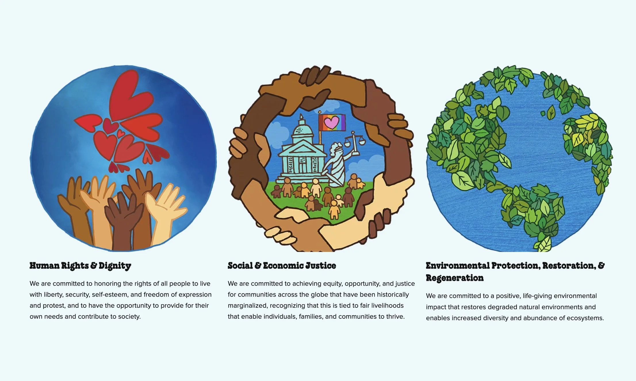 Social & Economic Justice –– Supporting fair trade and sustainable economic systems.